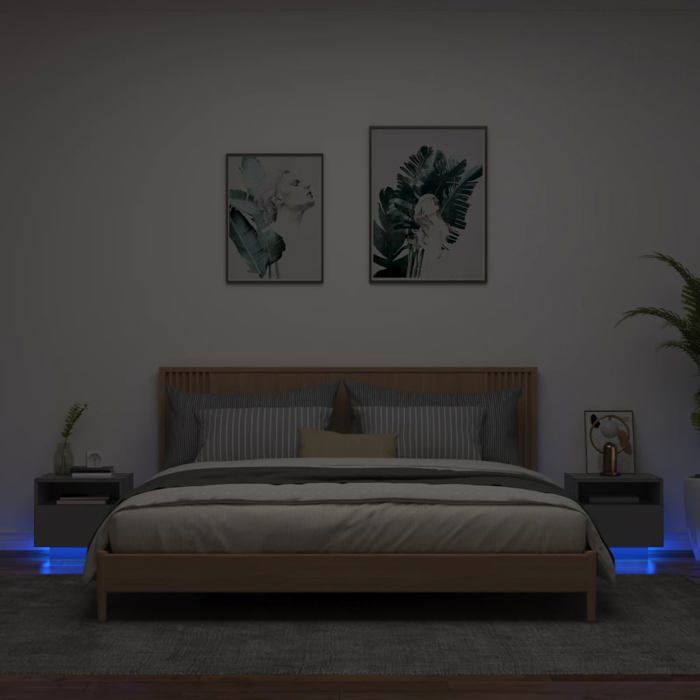 VidaXL Table de Chevet avec Lumières LED, Armoire de Nuit avec Rangement, Table de Nuit, Meuble de Chambre, Moderne, Gris 836801