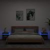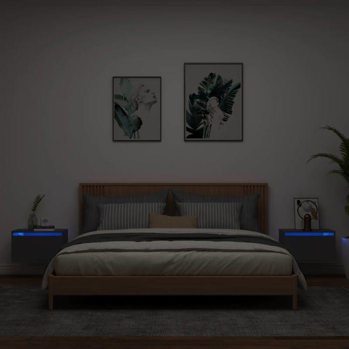 VidaXL Tables de Chevet Murales avec Lumières LED 2 pcs, Armoires de Nuit, Tables de Nuit Chambre, Moderne, Noir Bois 836829