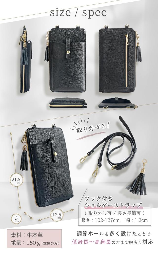 Smartphone shoulder smartphone pouch for women removable dull Genuine leather smartphone wallet shoulder shoulder cell crossbody [Liscia] bag, [with