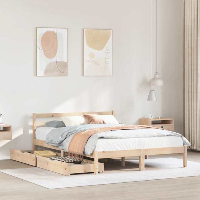 VidaXL Cadre de lit avec tiroirs 160x200 cm bois massif de pin, sommier, cadre de lit double, cadre de lit en bois massif, 3301544