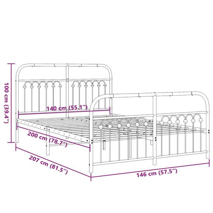 VidaXL Cadre de lit métal avec tête de lit/pied de lit noir 140x200 cm, lit double, meuble de chambre à coucher, lit 376619