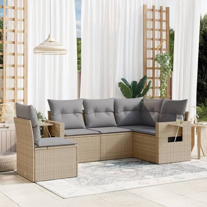 VidaXL Salon de Jardin avec Coussins 5 pcs, Canapés de Terrasse, Ensemble de Meubles de Patio, Mobilier d'Extérieur, Beige 3252506