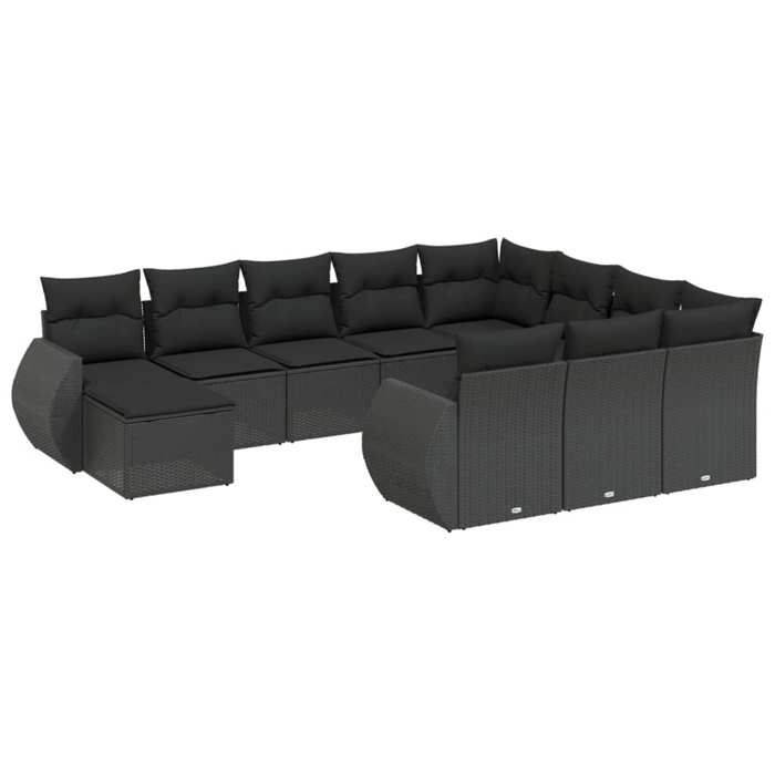 VidaXL Salon de Jardin avec Coussins 10 pcs, Canapés de Terrasse, Ensemble de Meubles de Patio, Mobilier d'Extérieur, Noir 3257840
