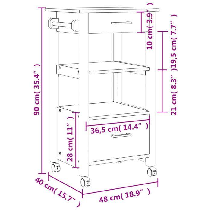 VidaXL Chariot de cuisine MONZA 48x40x88,5 cm bois massif de pin 376087