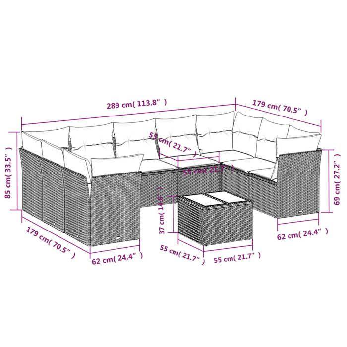 VidaXL Salon de Jardin avec Coussins 10 pcs, Canapés avec Pieds Réglables, Ensemble de Meubles d'Extérieur Patio Terrasse, 3249981
