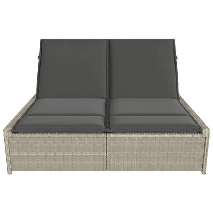 VidaXL Chaise longue double avec coussins gris clair résine tressée, lit de bronzage, chaise longue inclinable, lit de jour 368184