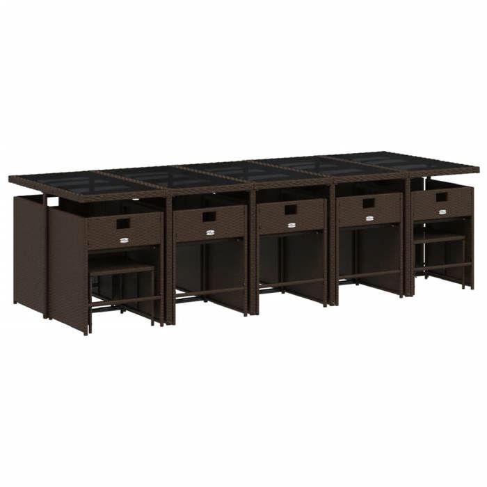 VidaXL Ensemble à Manger de Jardin avec Coussins 15 pcs, Table et Chaises à Dossier Rabattable, Meubles d'Extérieur Patio 3211173