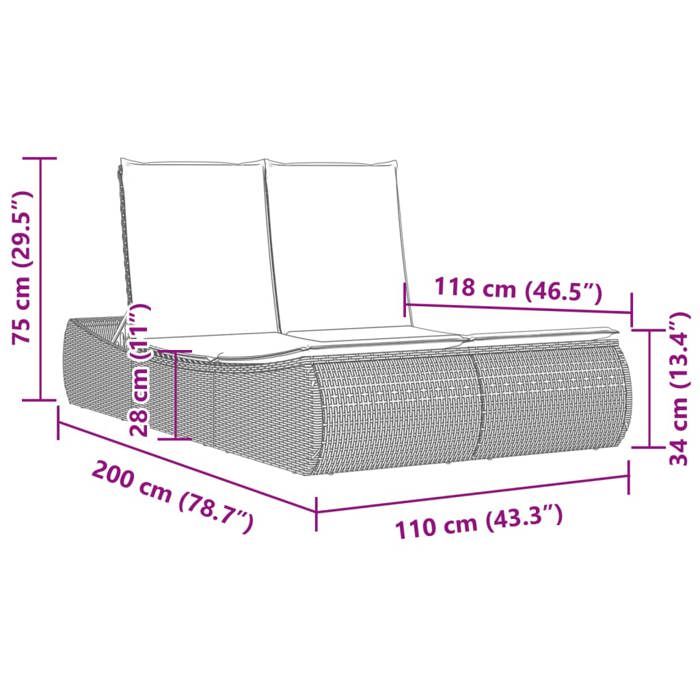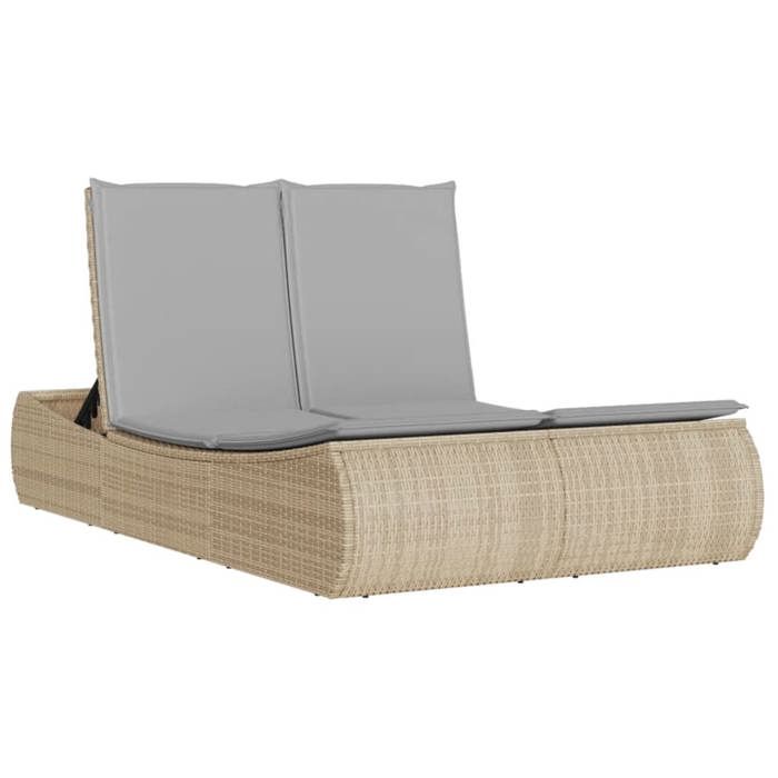 VidaXL Chaise longue double avec coussins beige résine tressée, transat, lit de jour d'extérieur, lit de jour de jardin, lit 368093