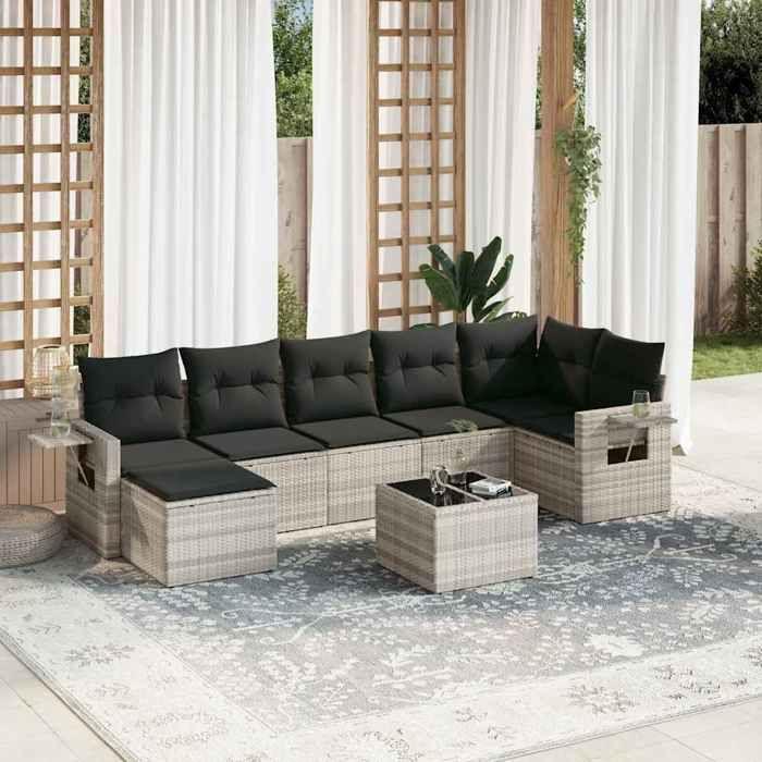 VidaXL Salon de Jardin avec Coussins 8 pcs, Canapés de Terrasse, Ensemble de Meubles de Patio, Mobilier d'Extérieur, Gris 3220491