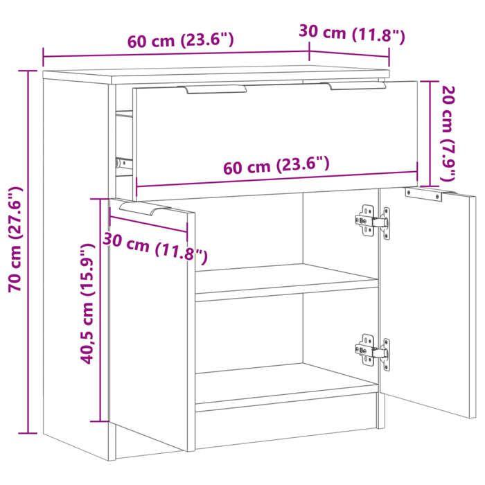 VidaXL Buffet chêne artisanal 60x30x70 cm bois d'ingénierie, meuble de rangement, meuble de rangement de cuisine, meuble de 856841