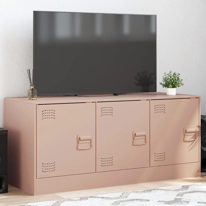 VidaXL Meuble TV rose 99x39x44 cm acier, banc TV, meuble télé, meuble multimédia, buffet TV, meuble hifi, centre de 841644