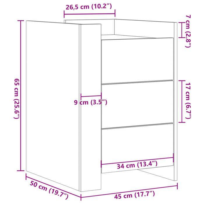 VidaXL Table de chevet noir 45x50x65 cm bois d’ingénierie, meuble de chevet, table d'appoint, armoire de lit, armoire de 848305