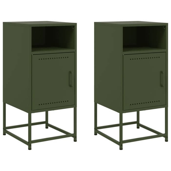 VidaXL Tables de chevet 2 pcs vert olive 36x39x78 cm acier, armoire, armoire latérale, meuble de chambre à coucher, table de 846575