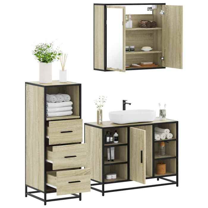VidaXL Ensemble de meubles de salle de bain 3 pcs chêne sonoma, armoire de salle de bain, armoire de rangement de toilette, 3301031