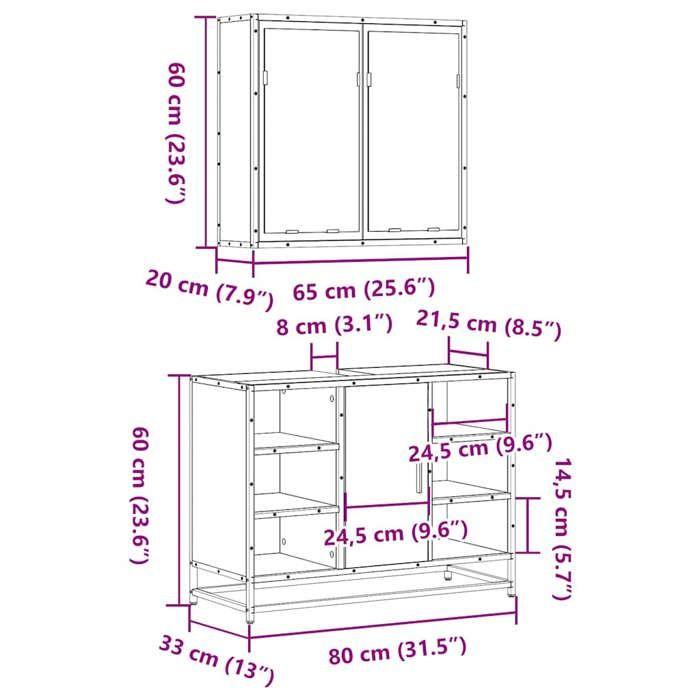 VidaXL Ensemble de meubles de salle de bain 2 pcs Sonoma gris 3300913