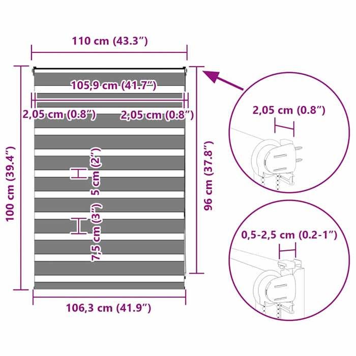 VidaXL Store zèbre gris clair largeur du tissu 105,9 cm polyester, store à enrouleur zébré, store zébré pour fenêtre, store 4014419