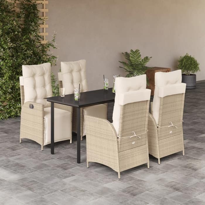VidaXL Ensemble à Manger de Jardin avec Coussins 5 pcs, Table et Chaises avec Dossier et Repose-pied Réglables, Meubles 3213443