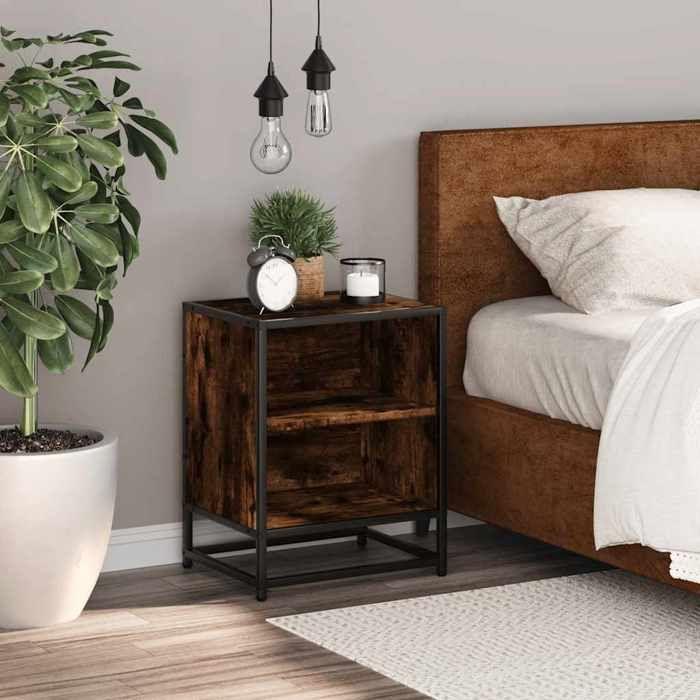 VidaXL Table de chevet chêne fumé 40x31x50 cm bois d'ingénierie métal, table d'appoint, armoire de lit, table d'appoint pour 848703