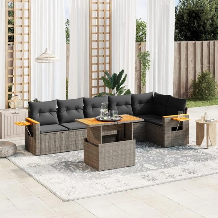 VidaXL Salon de Jardin avec Coussins 7 pcs, Canapés de Terrasse, Ensemble de Meubles de Patio, Mobilier d'Extérieur, Gris 3273531