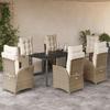 VidaXL Ensemble à Manger de Jardin avec Coussins 7 pcs, Table et Chaises avec Dossier et Repose-pied Réglables, 3213446