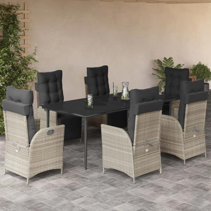 VidaXL Ensemble à Manger de Jardin avec Coussins 7 pcs, Table et Chaises avec Dossier Réglable, Meubles d'Extérieur, 3213467