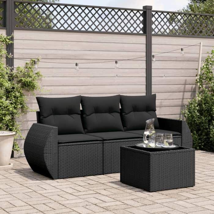 VidaXL Salon de jardin 4 pcs avec coussins noir résine tressée 3253402