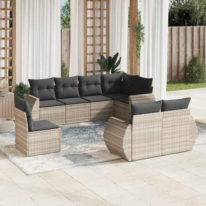 VidaXL Salon de Jardin avec Coussins 8 pcs, Canapés avec Dossier, Ensemble de Meubles, Mobilier de Terrasse Patio, Gris 3221641 — купить товар онлайн с бесплатной доставкой по всему миру!