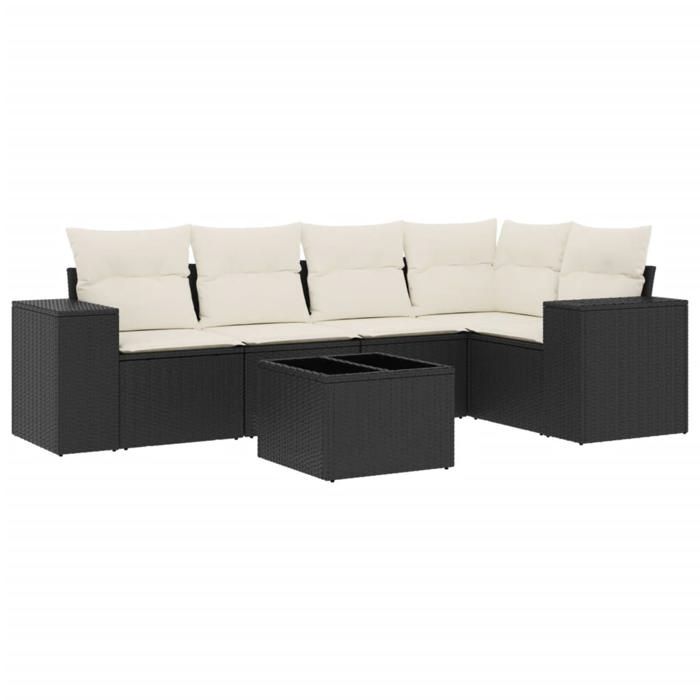 VidaXL Salon de Jardin avec Coussins 6 pcs, Canapés de Terrasse, Ensemble de Meubles de Patio, Mobilier d'Extérieur, Noir 3254873