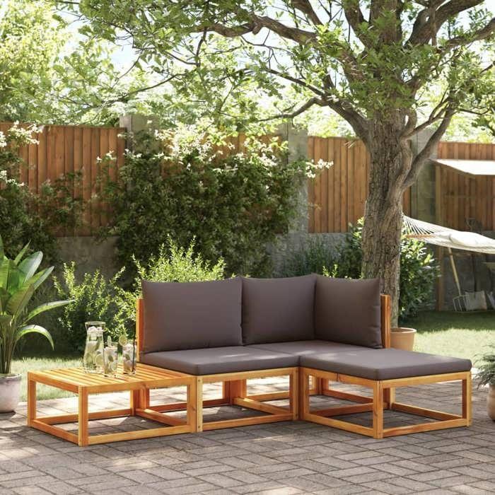 VidaXL Salon de jardin avec coussins 4 pcs bois d'acacia massif, ensemble de canapés d'extérieur, canapé modulable, canapé 3278824 — купить товар онлайн с бесплатной доставкой по всему миру!