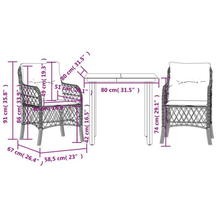 VidaXL Ensemble de Bistro avec Coussins 3 pcs, Table et Chaises de Jardin, Ensemble de Meubles d'Extérieur Balcon, Moderne, 3212117