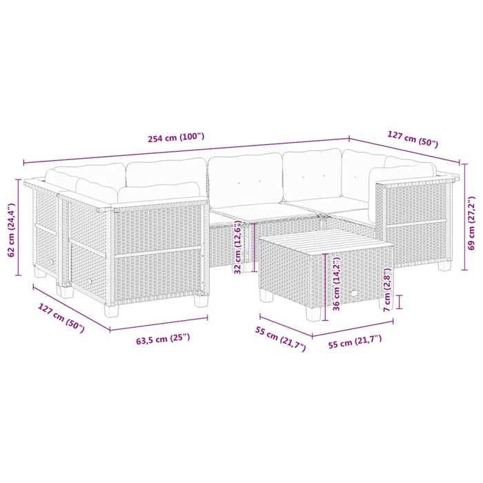 VidaXL Salon de jardin avec coussins 7 pcs beige résine tressée 3261745