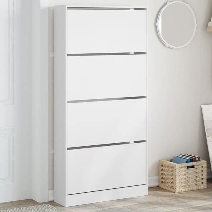 VidaXL Шкаф для обуви 4 откидных ящика белый 80x21x163,5 см 3214364 — купить товар онлайн с бесплатной доставкой по всему миру!