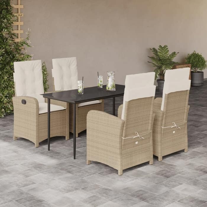 VidaXL Ensemble à Manger de Jardin avec Coussins 5 pcs, Table et Chaises avec Dossier Réglable, Meubles d'Extérieur Patio 3212373