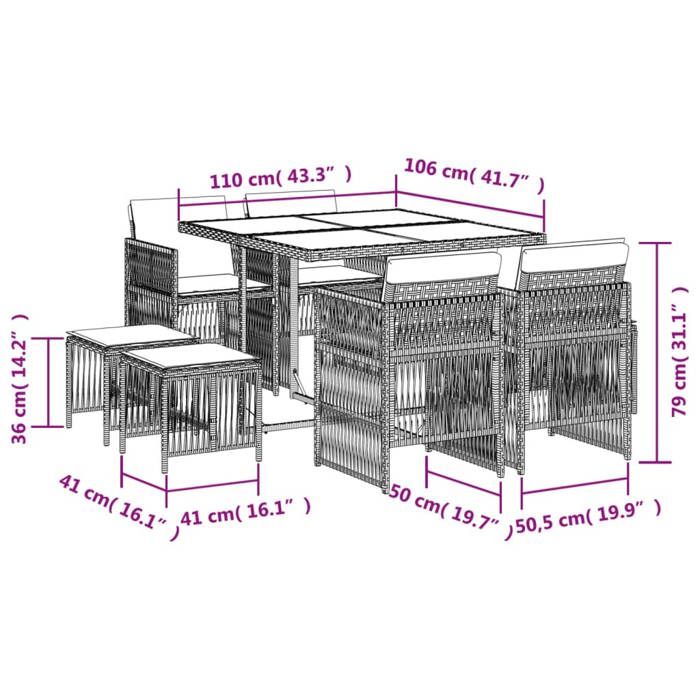 VidaXL Садовый обеденный комплект с подушками 9 шт., Стол и стулья для террасы, Мебель для патио, Садовая мебель, 3210959