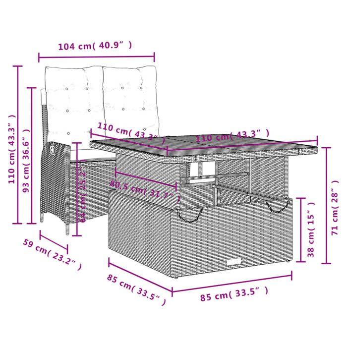 VidaXL Ensemble à Manger de Jardin avec Coussins 2 pcs, Table de Terrasse, Ensemble de Meubles de Patio, Mobilier 3277463