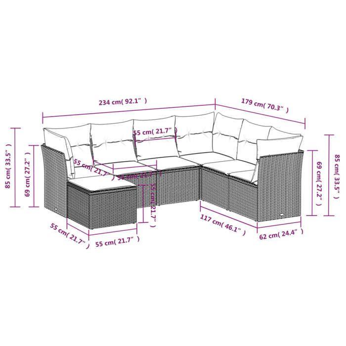 VidaXL Salon de Jardin avec Coussins 7 pcs, Canapés avec Pieds Réglables, Ensemble de Meubles d'Extérieur Patio Terrasse, 3217992