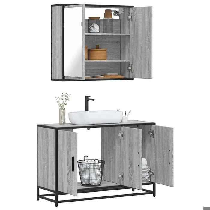 VidaXL Ensemble de meubles de salle de bain 2 pcs Sonoma gris 3300893