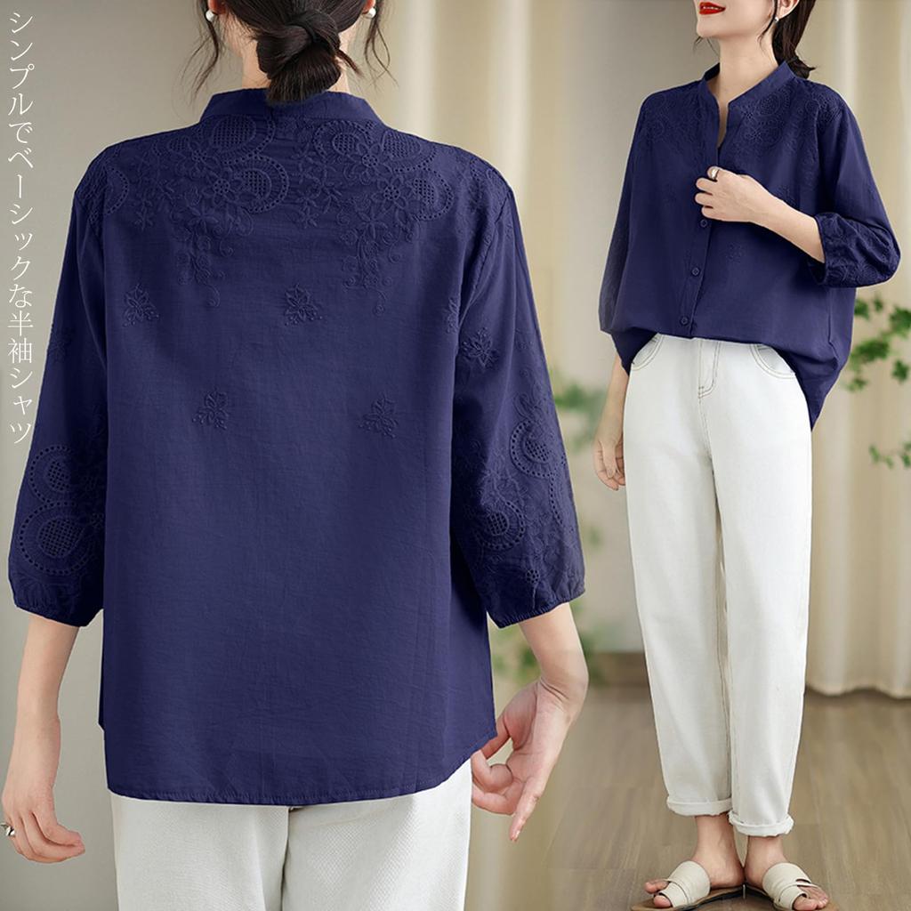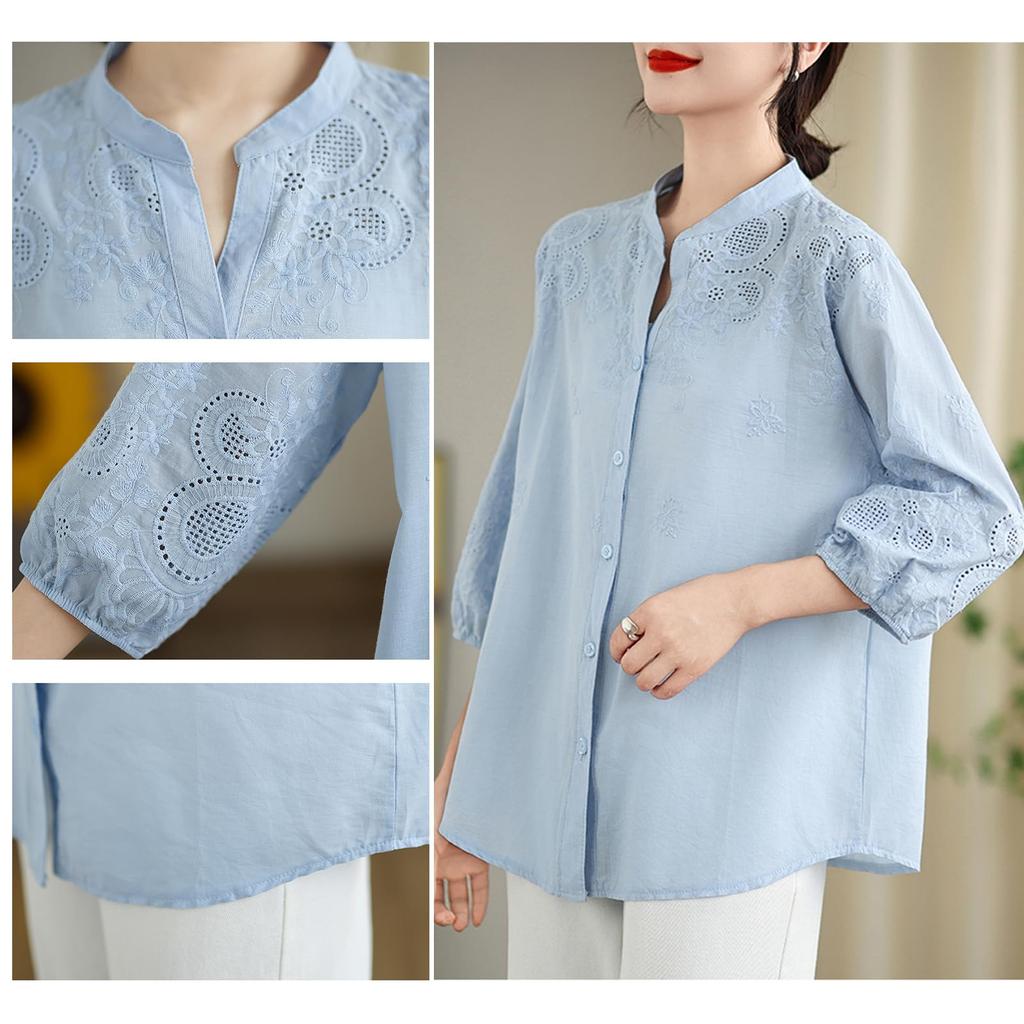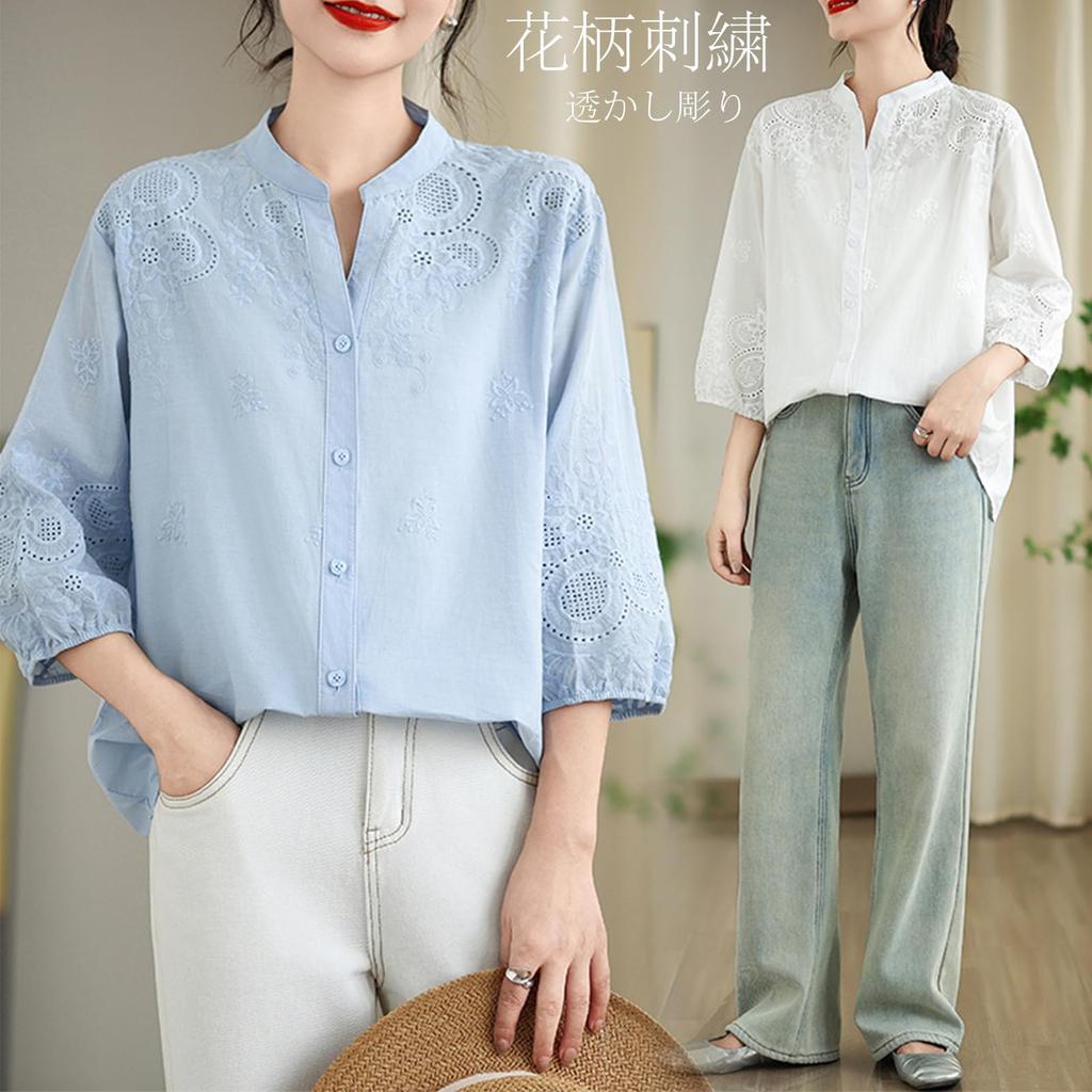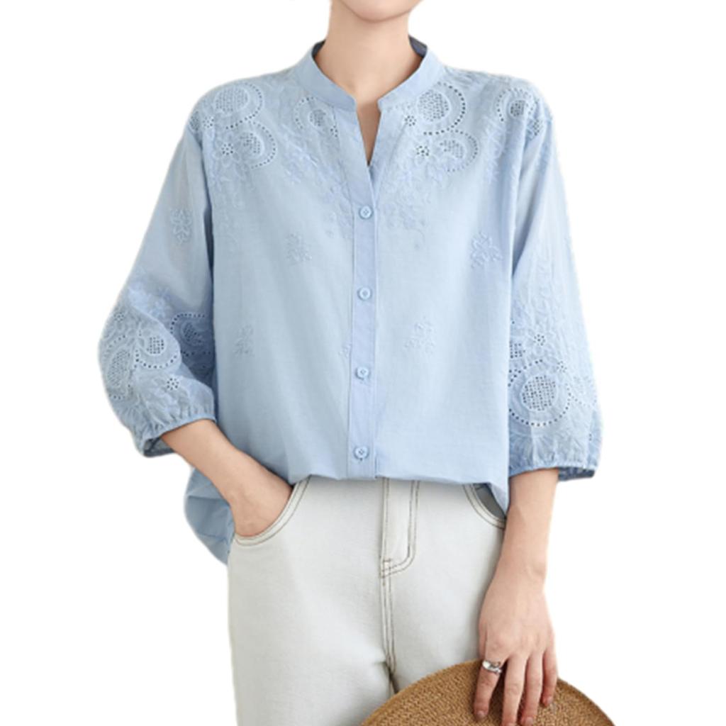 Рубашка для цветочного свободного большого тела повседневная для выхода летняя одежда [OGCPWYQZ] Женщины с короткими рукавами, блузка, топ с рукавами 3/4, узор, вышивка,