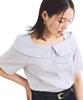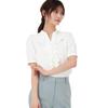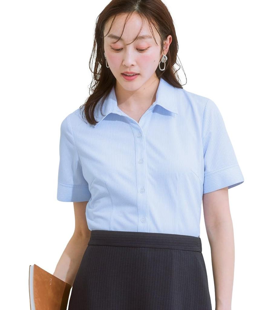 Рубашки и блузки для женщин с полосатыми рубашечными пуговицами для предотвращения сакс [Nissen], трикотажные с коротким рукавом (с подглядываниями) (влагоотводящий, быстросохнущий,