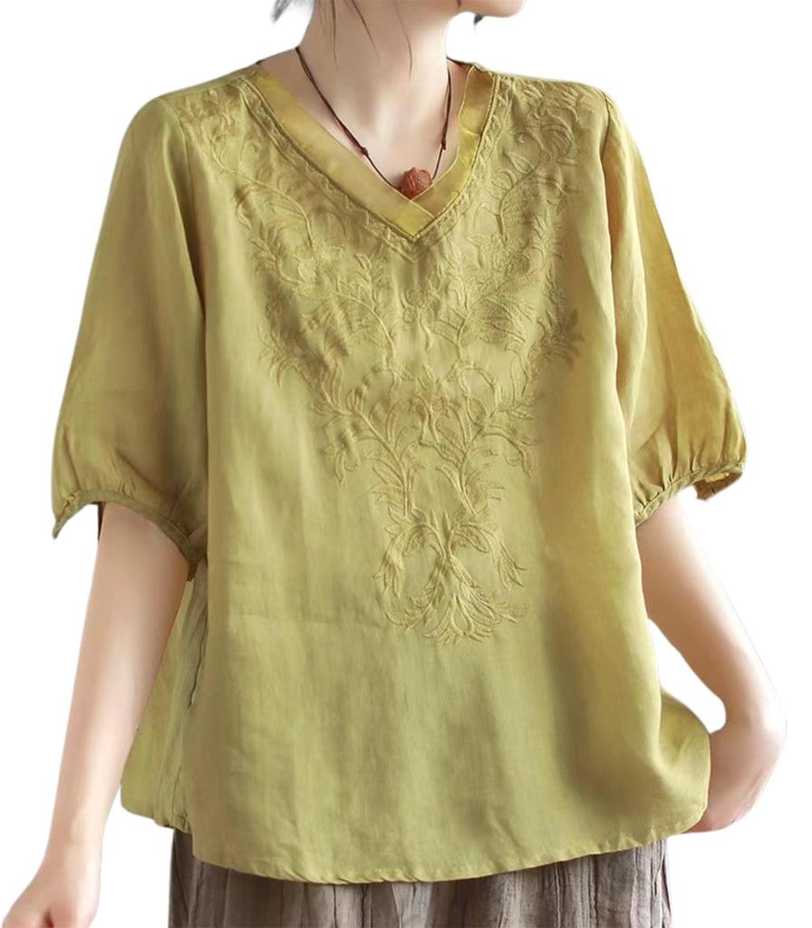 Вышитый топ пуловер блузка прохладная с коротким рукавом летняя рубашка летняя рубашка без пуговиц однотонная взрослая тонкая весенняя одежда аккуратная одежда домашняя одежда боди