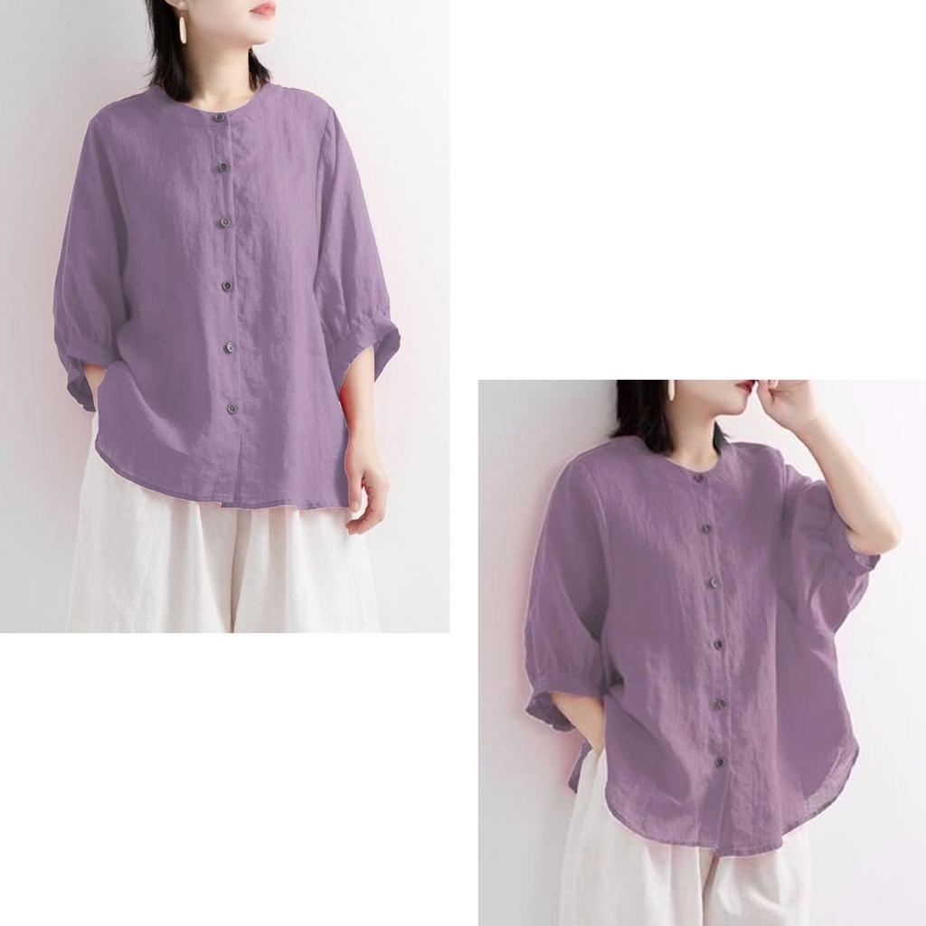 Короткий круглый для свободного прилегания [zuevichn] Женская футболка, рукав, рубашка на пуговицах, топ, горловина, трикотаж, тонкий, дышащий, для поездок, (фиолетовый, XL)