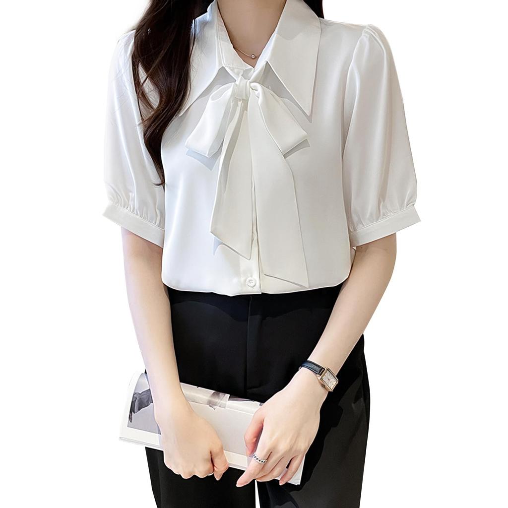 Поскольку оно тонкое и прозрачное, цвет и форма нижнего белья неизбежно будут заметны, поэтому, если вы не подберете цвет нижнего белья, оно может просвечивать.. Мы рекомендуем сочетать его с незаметным нижним бельем, например, бежевым.. [Удобный шифоновый материал] Изготовлен из полиэстерового материала с прохладным прикосновением и отличной воздухопроницаемостью и влагопоглощением. Высококачественный шифон с плотной текстурой обеспечивает освежающую, нежную и комфортную посадку даже летом.. [Женственный дизайн с галстуком-лентой] Галстук-лента прикреплен к воротнику, и в зависимости от того, как вы его завяжете, он может быть преобразован в милый и скромный взрослый женственный стиль или в аккуратный и элегантный стиль.. Это подчеркнет вашу женственность, добавив акцент вашему наряду.