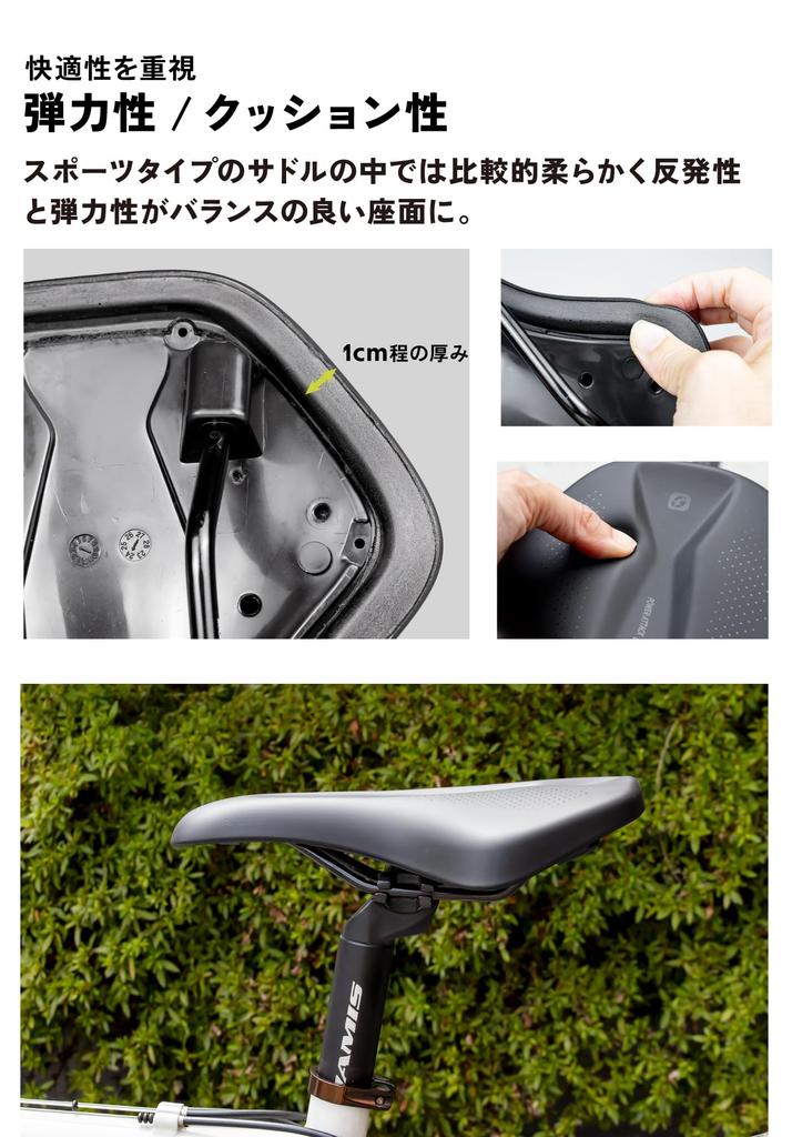 [Короткий нос] Нос короткий, поэтому внутренние бедра не натираются о седло, что обеспечивает плавное педалирование.. Нос также наклонен к кончику, что облегчает наклон вперед.. [Упругое] Сиденье относительно мягкое среди спортивных седел, с хорошим балансом упругости и эластичности. Рекомендуется тем, у кого болят ягодицы из-за жесткости седла. Подушка мягкая, что повышает комфорт даже при длительных поездках.. Он имеет умеренную толщину и твердость, а также отличную ударопрочность.