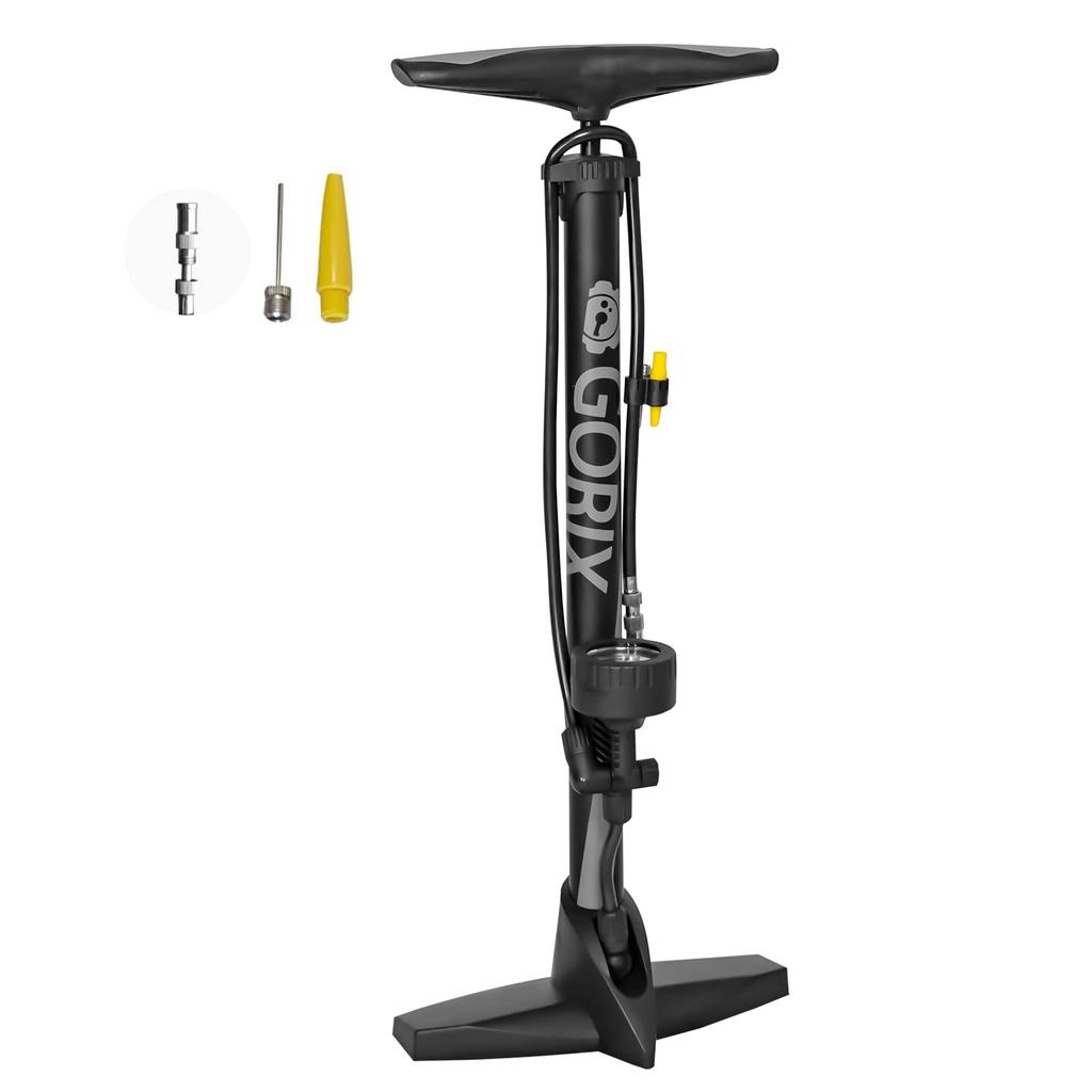 GORIX Велосипедный насос с манометром [Совместим с американскими, французскими и британскими ниппелями] (Матовый черный) GX-33P