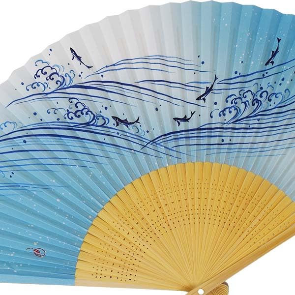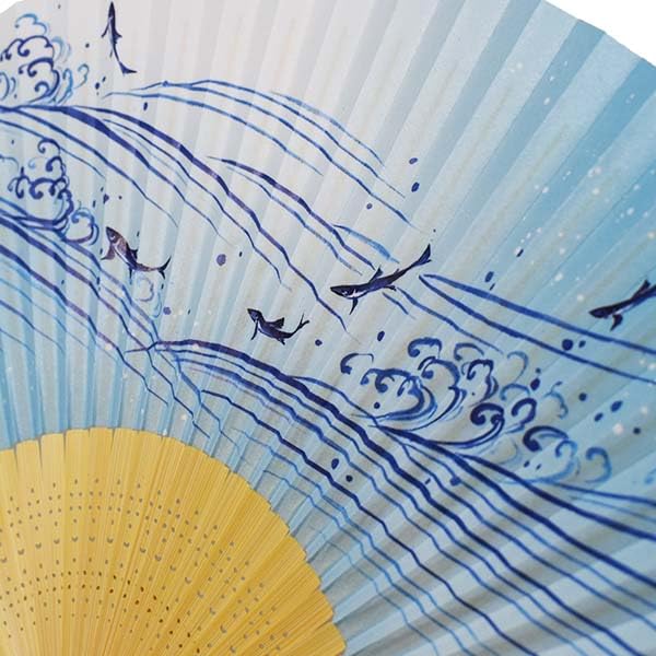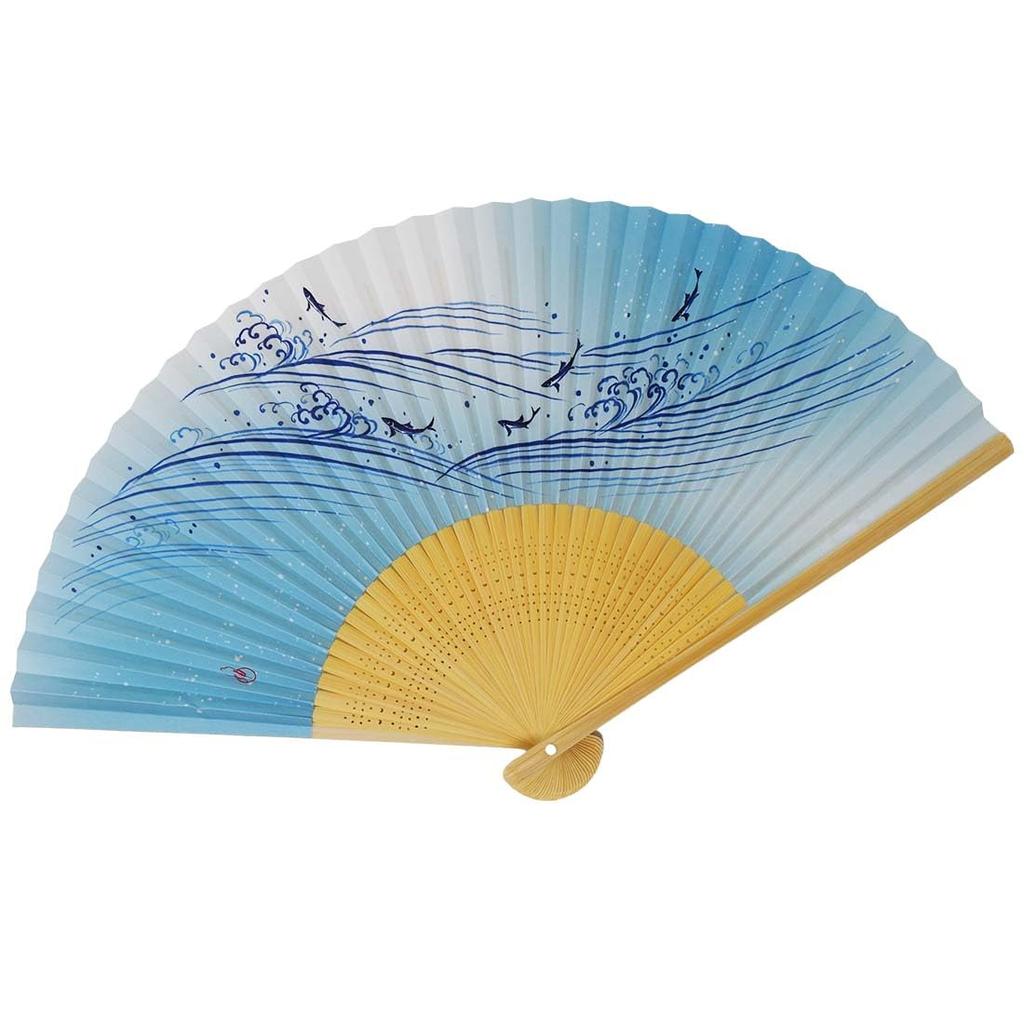 Классический складной веер, подходящий для любого случая, с рисунками, нанесенными на бумагу для веера, изготовленную в Киото.