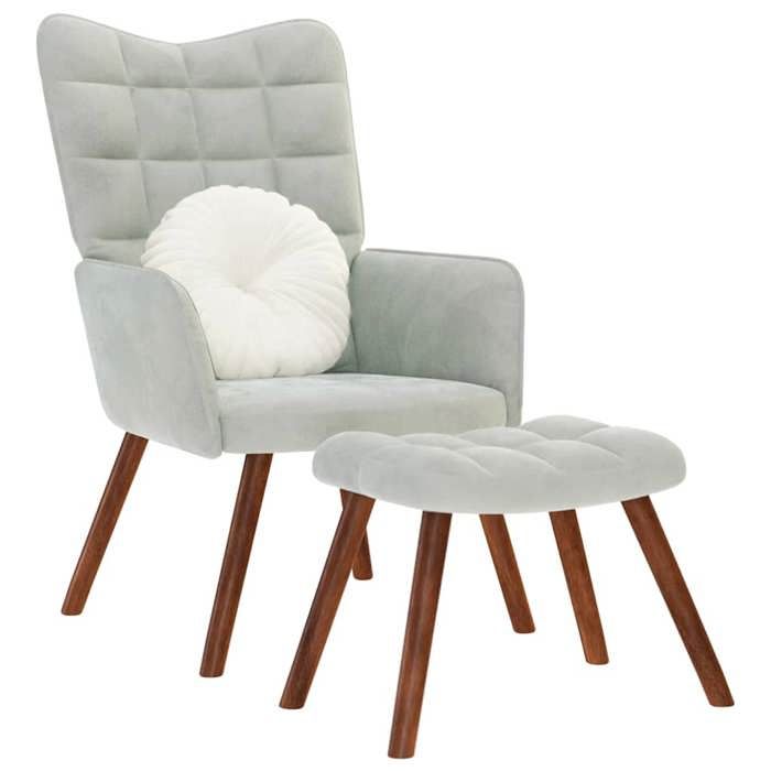 VidaXL Chaise de relaxation avec tabouret Gris clair Velours, chaise, chaise de salon, fauteuil relax, chaise longue, siège 4016821