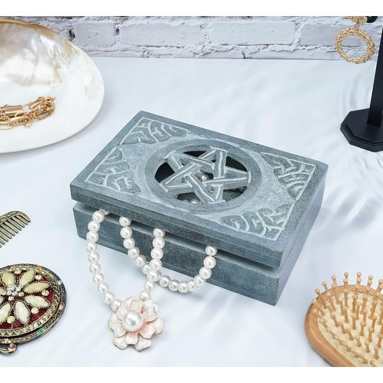 Crocon Шкатулка для украшений с дизайном символа Звезды Давида, ручной работы в Индии, органайзер для хранения каменных украшений, для хранения драгоценных украшений :- (15 X 10 X 4.5)