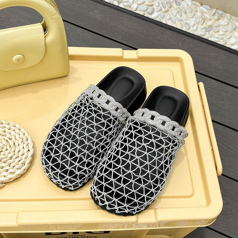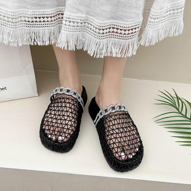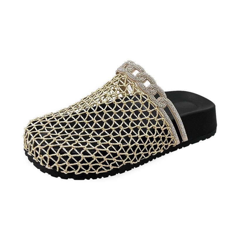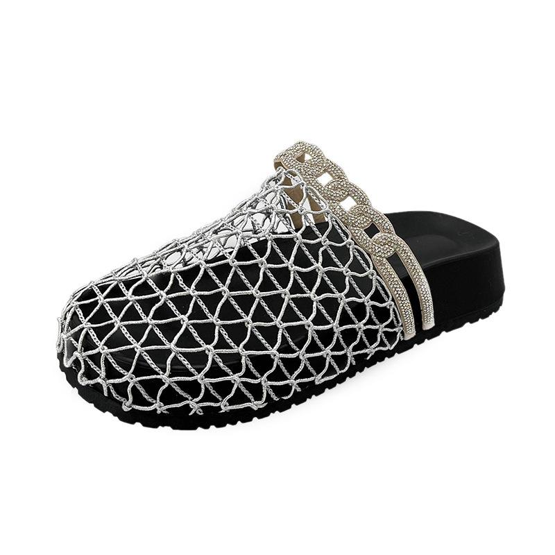 Летние новые рыбацкие шлепанцы на плоской подошве с круглым носком и закрытым носком, европейские и американские нишевые, плетеные из рыболовной сети, полые, прохладные шлепанцы