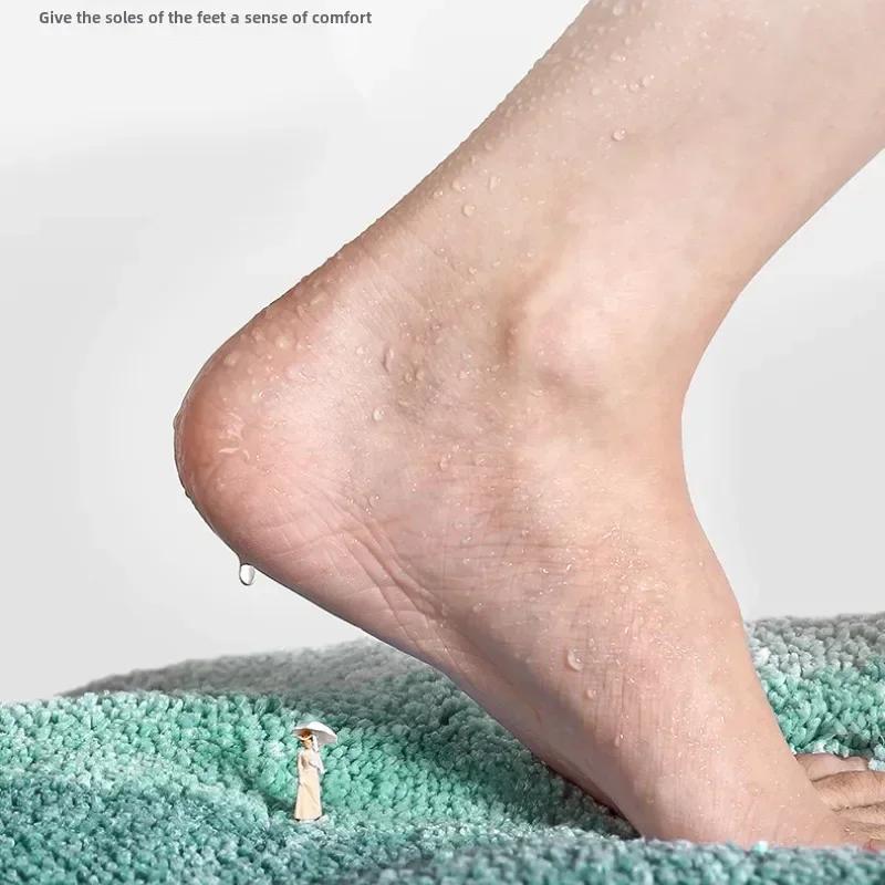 Коврик для пола обладает высокой водопоглощающей способностью и может быстро впитывать влагу с подошв ног. Он как губка, позволяющая мокрым следам исчезать мгновенно, эффективно предотвращая распространение водяных пятен за пределы ванной комнаты и поддерживая чистоту в доме.. Дно имеет противоскользящую конструкцию, густо покрыто прочными противоскользящими частицами, которые плотно «цепляются» за землю и могут быть надежно зафиксированы на месте даже в скользкой среде, обеспечивая вам безопасную опору и избегая риска поскользнуться.