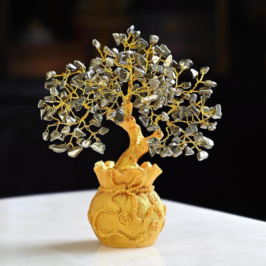 Денежное дерево из кристалла пирита – Выставочный экспонат для привлечения богатства для декора дома и офиса - Идеальный подарок